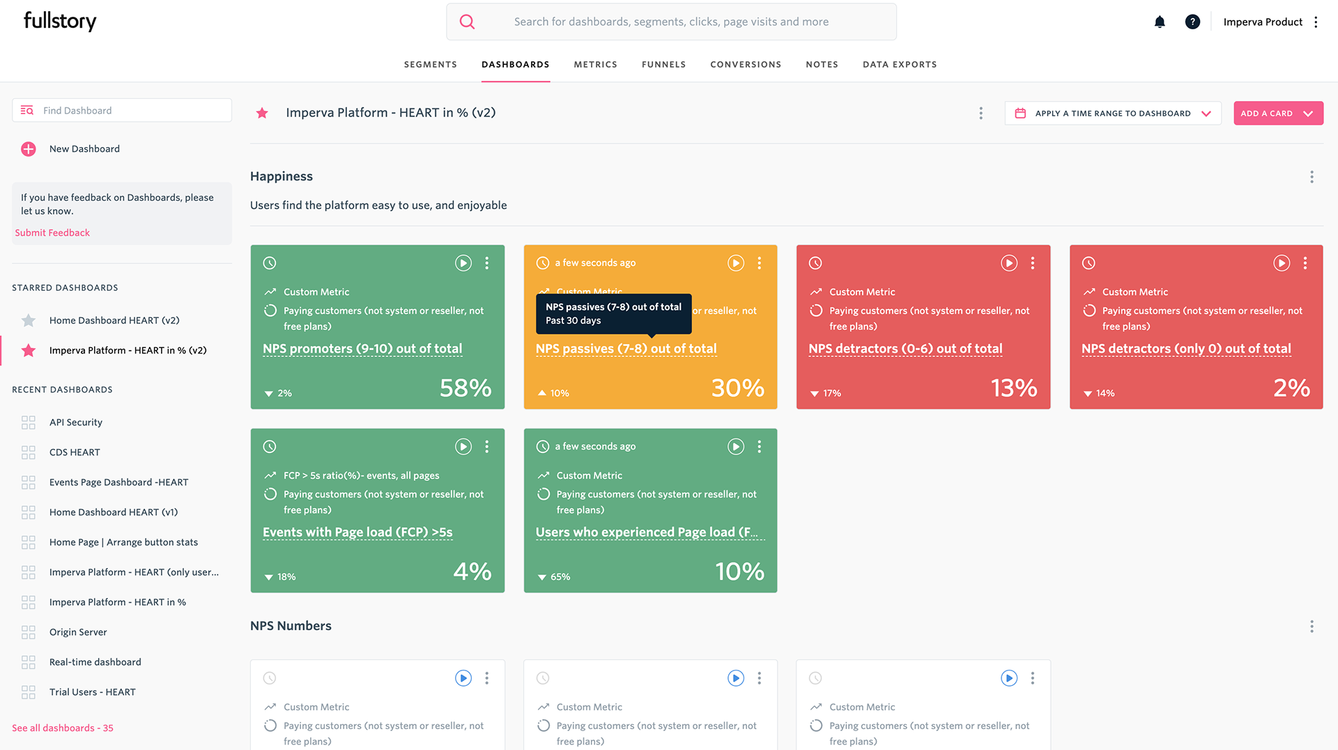 Qualitative feedback that indicates service issues shorten fix time. In addition, it provides the evidence needed for stakeholders. We chose to use Fullstory, which records all user sessions(excluded sensitive information), and we built our experience dashboard (See HEART Model) on top of it.